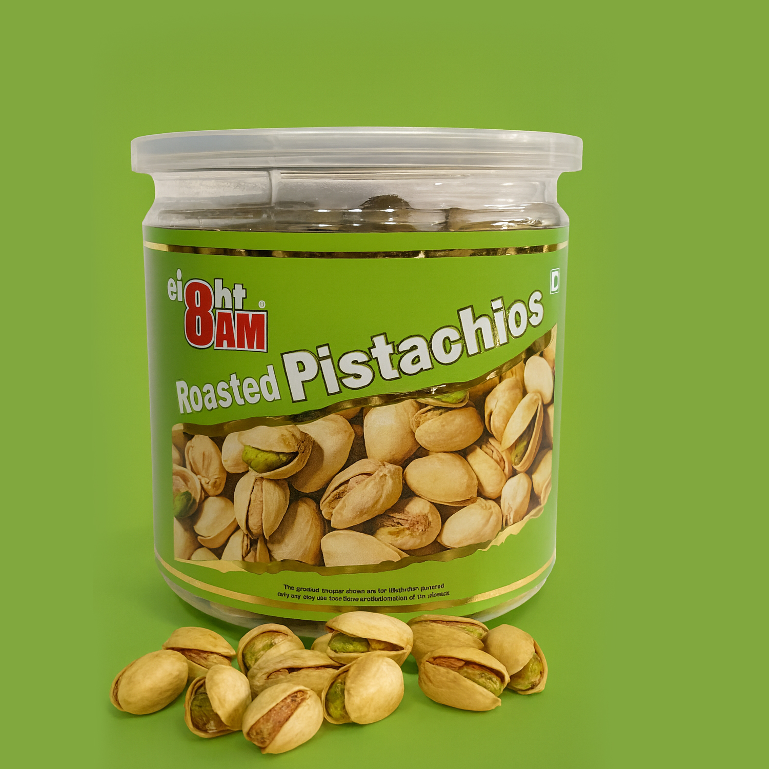 Fuel your day with the wholesome goodness & nutty crunch of 8AM Roasted Pistachios. Fibre-rich & seasoned to perfection, our Roasted Pistachios offer nutrient-rich bliss in every bite and are super tasty to munch. Relished by grownups & kids alike, serve Pistachios with cocktails, as evening snacks, and more.